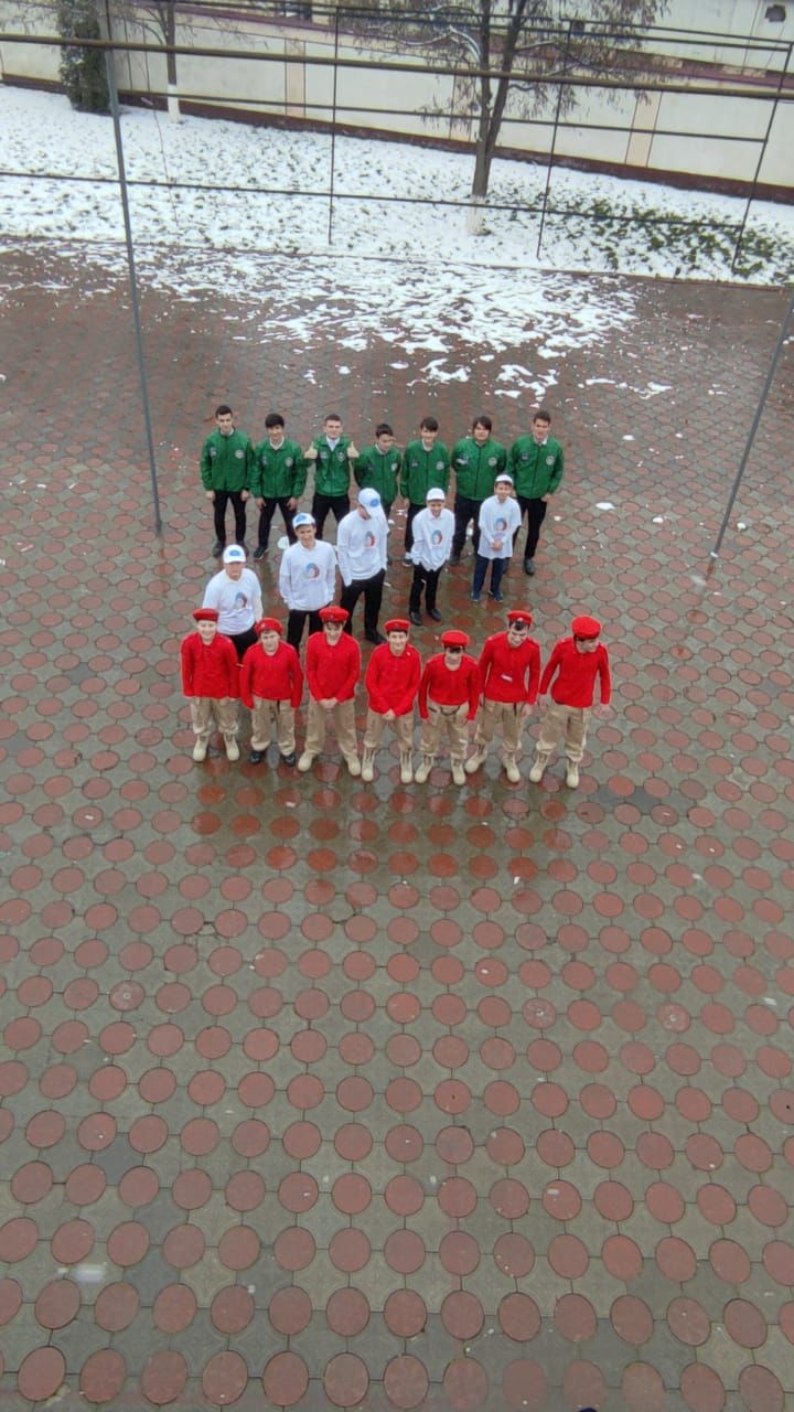 В рамках «Марафона добра» ВВПОД «ЮНАРМИЯ» и РДШ провели флэшмоб в поддержку военнослужащих Вооруженных Сил РФ, проводящих спецоперацию на территории Украины под знаками «Z» и «V».