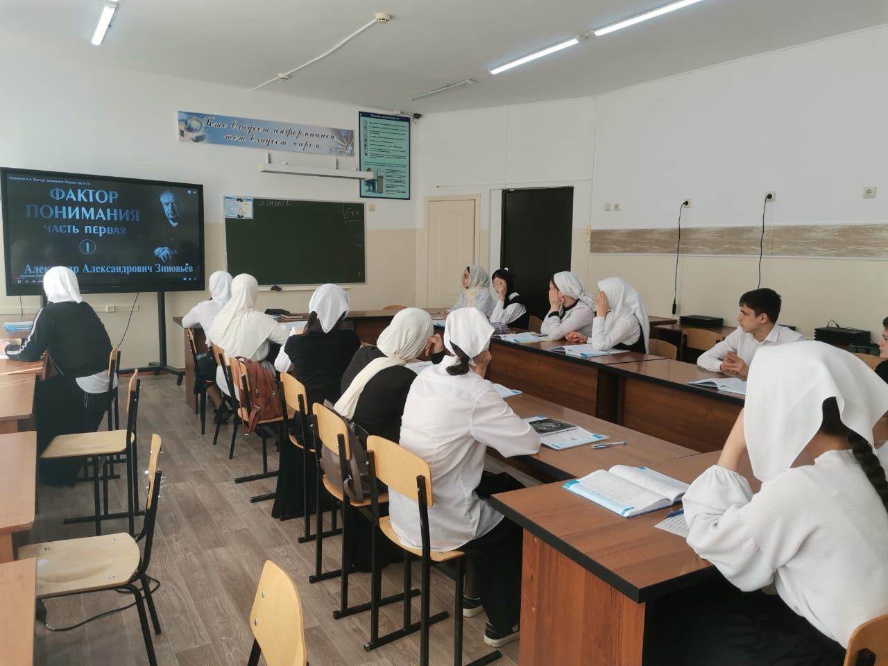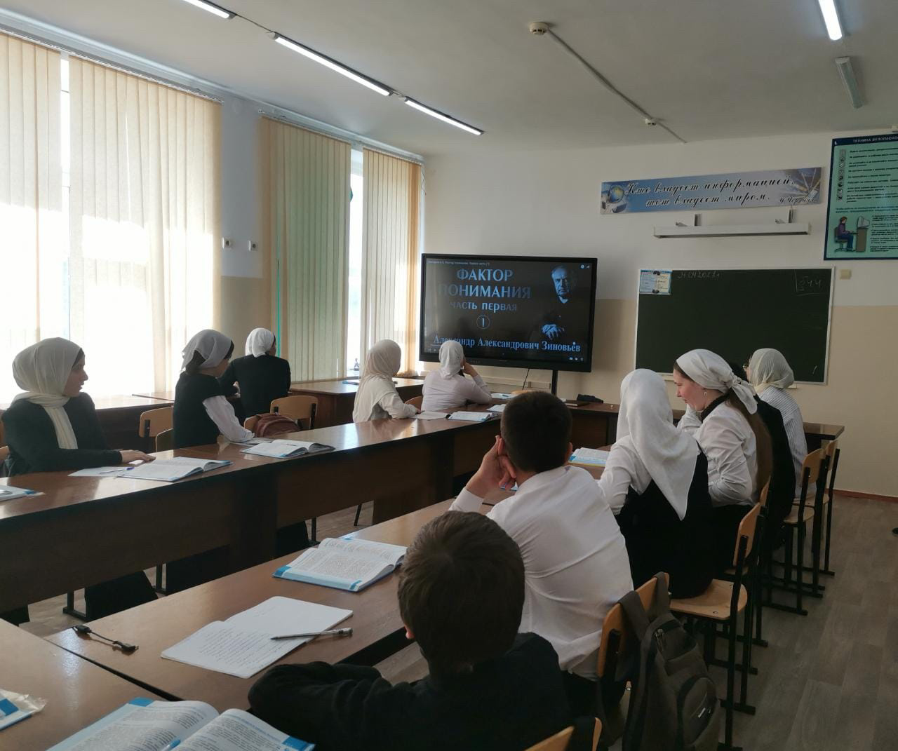 Сегодня (21.04.22) в МБОУ «СОШ№16» г. Грозного,для обучающихся 9-10 классов были проведены открытые уроки,посвященые столетию со дня рождения А.А. Зиновьева. Уроки провел учитель истории Дубаева Х.Д.