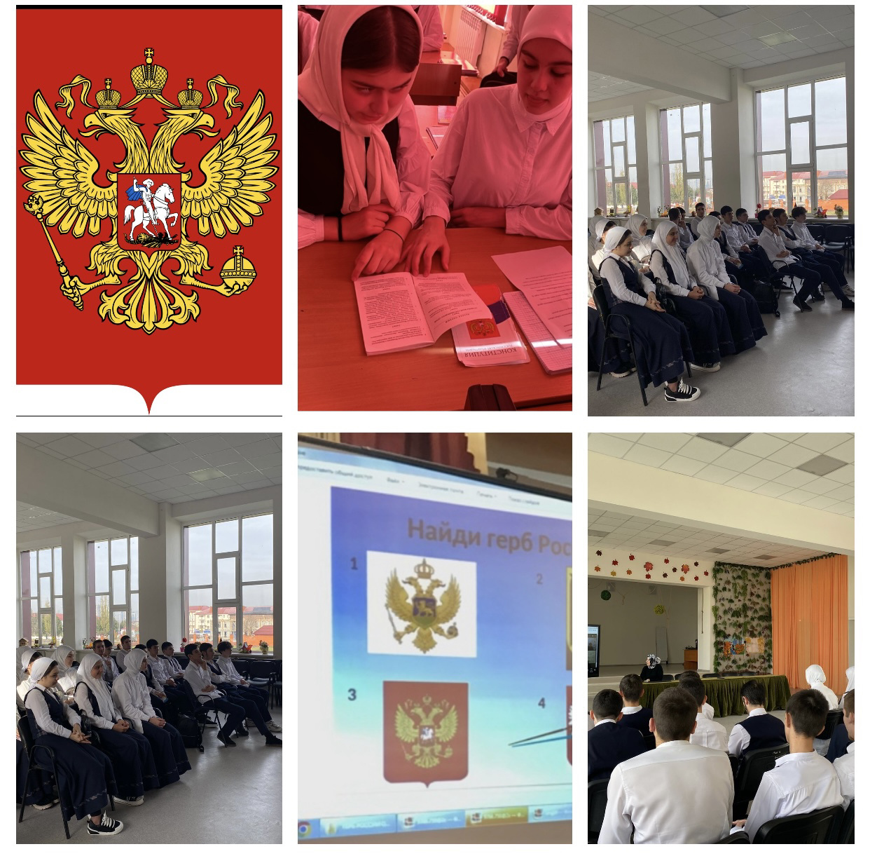 В МБОУ «СОШ 16» г. Грозного провели классный час. Во время классного часа обучающиеся изучали историю герба России, его символическое значение, цвета и изображения, содержащиеся на гербе. Они также обсудили значение герба как одного из государственных символов России и его использование в различных областях жизни страны. Обучающиеся могли задавать вопросы, обсуждать тему и делиться своими мыслями о гербе России в рамках классного часа.