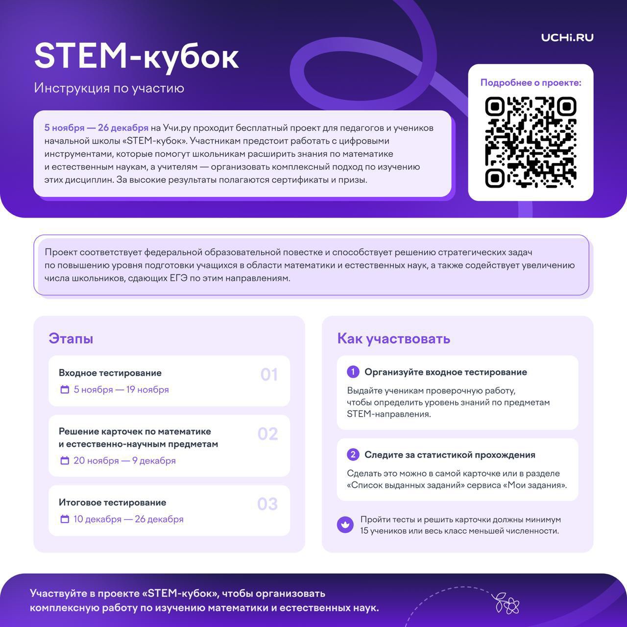 С 5 ноября по 26 декабря включительно на Учи.ру проводится бесплатный соревновательный проект «STEM-кубок» для 1–4 классов.